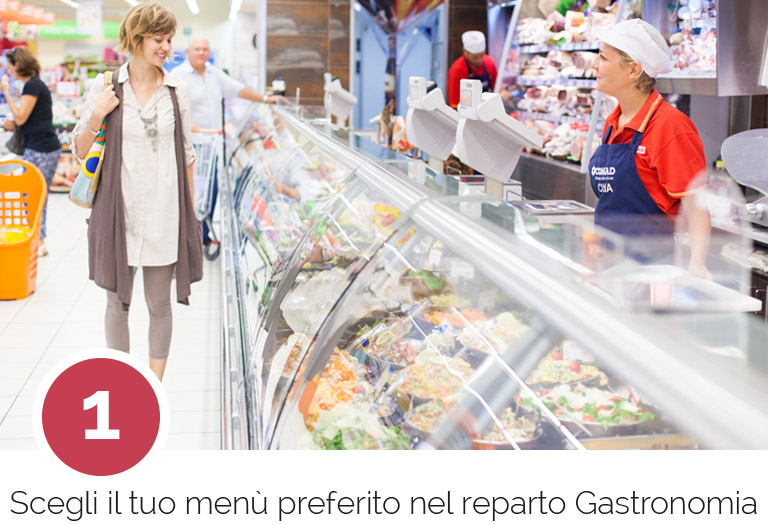 Questo non è un semplice supermercato; qui ogni giorno ritrovo freschezza, qualità e i sapori genuni di cui non posso fare a meno. Ma è proprio in questo momento della giornata che passando tra i reparti si può respirare un atmosfera, direi, familiare. Profumi e ricette preparate con i migliori ingredienti; piatti unici e tanti gustosi menù con prodotti di stagione. Pochi, semplici passaggi; basta scegliere, pagare alla cassa e finalmente posso gustare il mio pranzo in tutta comodità.